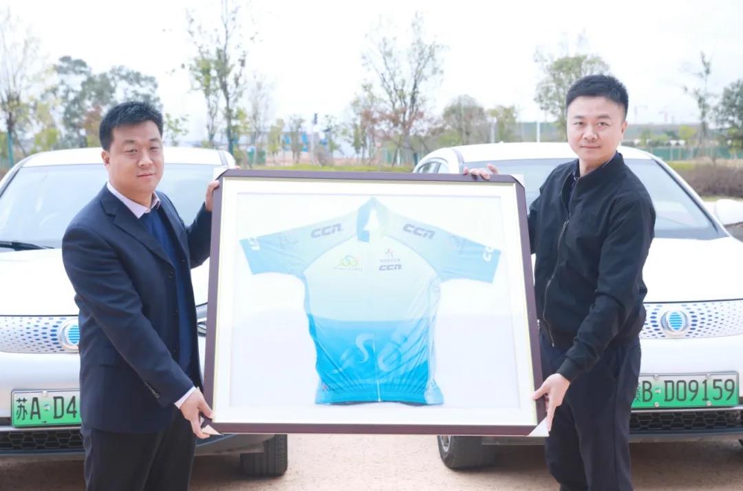 參觀后,環(huán)鄱陽(yáng)湖自行車精英賽運(yùn)營(yíng)方江西省體育發(fā)展有限公司董事長(zhǎng)沈紅斌與國(guó)機(jī)智駿高級(jí)執(zhí)行副總裁趙志剛代表雙方參加了簽約儀式,就下階段的深度合作達(dá)成了戰(zhàn)略協(xié)議。國(guó)機(jī)智駿高級(jí)執(zhí)行副總裁趙志剛向江西省體育發(fā)展有限公司董事長(zhǎng)沈紅斌交付用于賽事保障的車輛鑰匙,江西省體育發(fā)展有限公司董事長(zhǎng)沈紅斌向國(guó)機(jī)智駿贈(zèng)與2020年環(huán)鄱陽(yáng)湖自行車精英賽全套紀(jì)念獎(jiǎng)牌,江西省體育發(fā)展有限公司業(yè)務(wù)總監(jiān)陳祎煒向國(guó)機(jī)智駿贈(zèng)與2020年環(huán)鄱陽(yáng)湖自行車精英賽領(lǐng)騎衫。