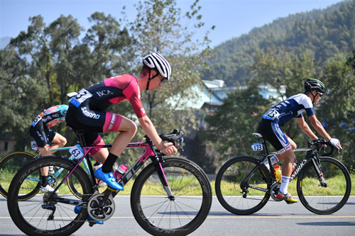 本賽段全程87.9公里,繼續(xù)沿用以往的經(jīng)典三圈盤(pán)山公路設(shè)計(jì),賽道中海拔落差最高可達(dá)600米,蜿蜒盤(pán)旋的山路對(duì)選手的爬坡能力和體力都是非常大的考驗(yàn)。上午9點(diǎn)準(zhǔn)時(shí)發(fā)車后,運(yùn)動(dòng)員開(kāi)始了兩個(gè)多小時(shí)的艱難騎行,中途不斷有選手因?yàn)楦鞣N原因放棄比賽,最終綜合實(shí)力強(qiáng)勁的美國(guó)瑪吉斯野生世代洲際車隊(duì)選手塞繆爾?約瑟?布阿德曼以絕對(duì)優(yōu)勢(shì)率先沖過(guò)終點(diǎn),收獲本站冠軍,捷克布拉格斯巴達(dá)車隊(duì)選手弗朗齊歇克?漢沙和澳大利亞新南威爾士車隊(duì)選手馬太?卡倫?迪納姆隨后沖線,分獲第二、三名。四色領(lǐng)騎衫與前兩賽段相比發(fā)生變化:本站冠軍――美國(guó)瑪吉斯野生世代洲際車隊(duì)選手塞繆爾?約瑟?布阿德曼接管了個(gè)人總成績(jī)(藍(lán)冠軍衫);法國(guó)國(guó)防車隊(duì)選手朱利安?阿馬多利勇奪登山王(圓點(diǎn)冠軍衫)。而中國(guó)江西新力物業(yè)車隊(duì)選手彭源堂和美國(guó)瑪吉斯野生世代洲際車隊(duì)選手肯特?貝爾納迪尼?羅斯憑借累計(jì)的優(yōu)勢(shì)和穩(wěn)定的發(fā)揮繼續(xù)將最佳大中華(粉紅冠軍衫)和沖刺王(橙冠軍衫)留在了自己身上。